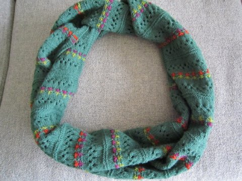Tørklæde / røret er strikket som et lang lige stykke, og nå [...]r man er færdig med at strikke, kan man bestemme, om man vil bruge det som et tørklæde, eller man vil sy det sammen til et rør.